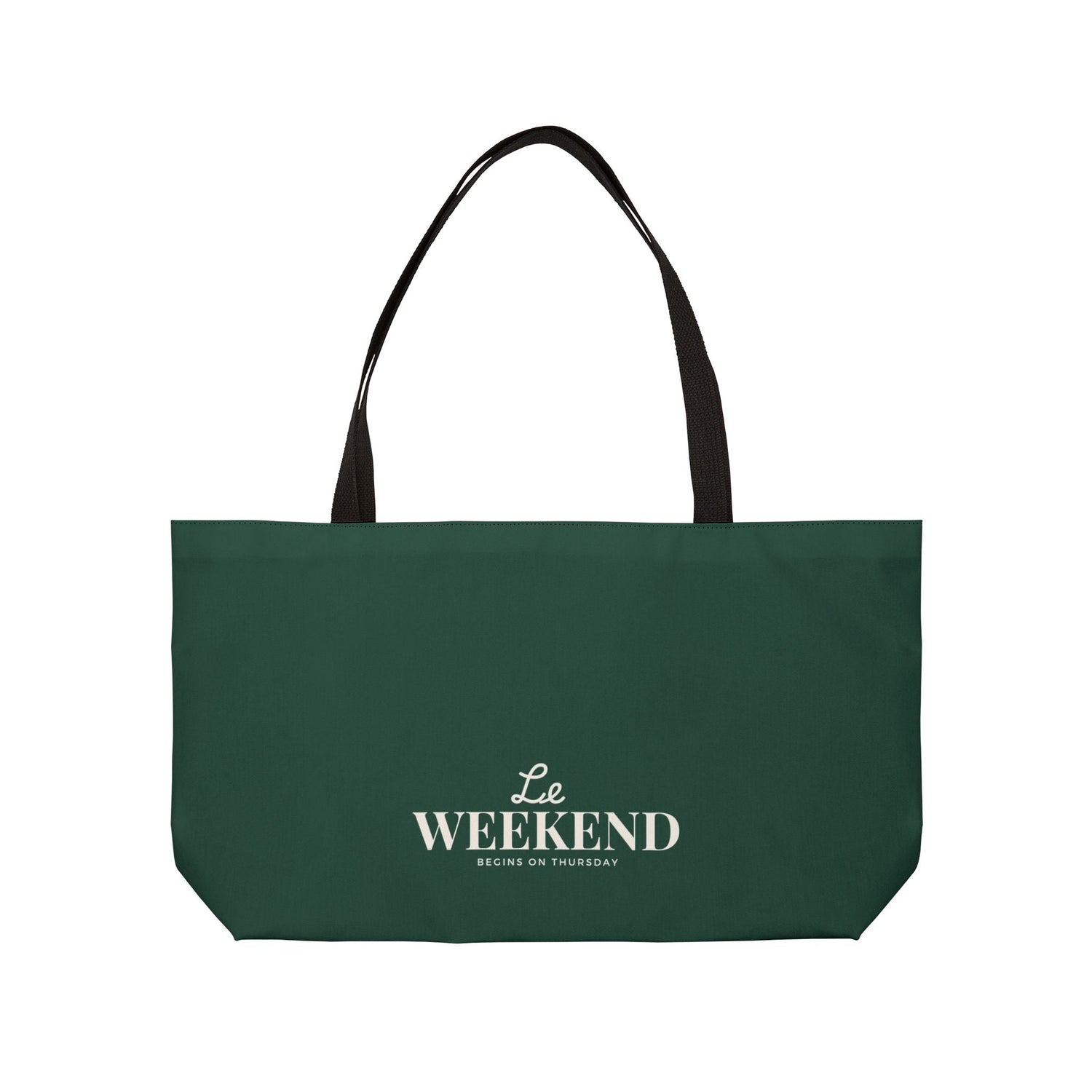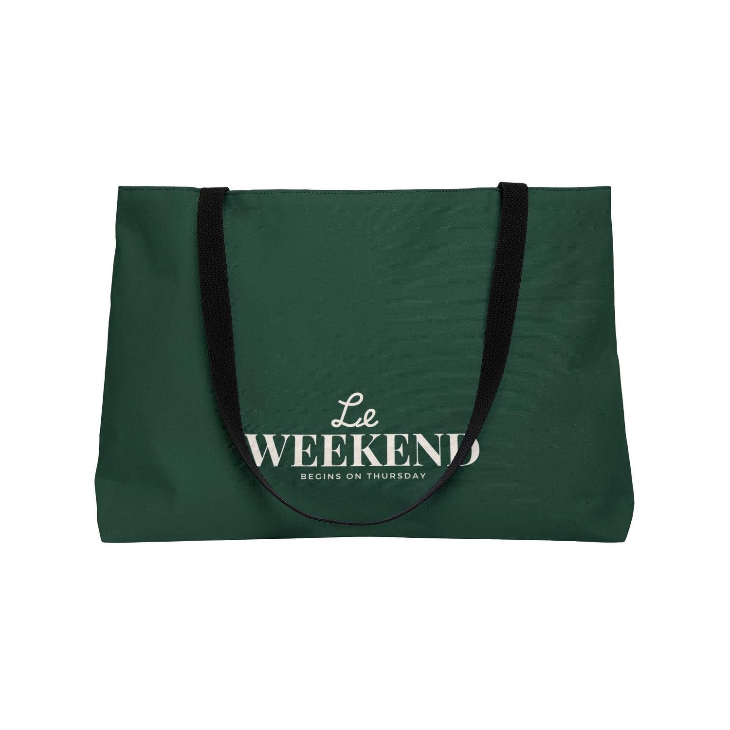 Le Weekend starts on Thursday Oversized Tote in Hunter Green for quick getaways and fun weekend adventures.  Perfect for those who love weekend trips and spontaneous getaways. Ideal for travelers, adventurers, and anyone in need of a large bag for their essentials. Relevant for weekend trips, vacations, beach outings, and city explorations.
