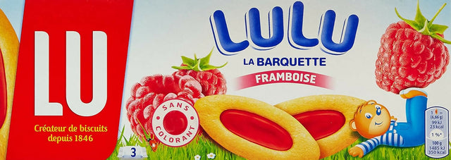 LU Raspberry Barquettes are a timeless French favorite, loved for their light texture and fruity sweetness. Each delicate sponge biscuit is shaped like a little boat and filled with a smooth, vibrant raspberry center that brings a bright, tangy twist to every bite.