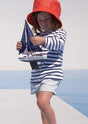 Easy to mix and match, this long-sleeve striped sailor shirt lends itself to a multitude of styles to brighten a child's day: Blue and white for little sailors, with a tulle skirt for dancing princesses, worn even with the motley colors of a clown costume....the possibilities are endless.