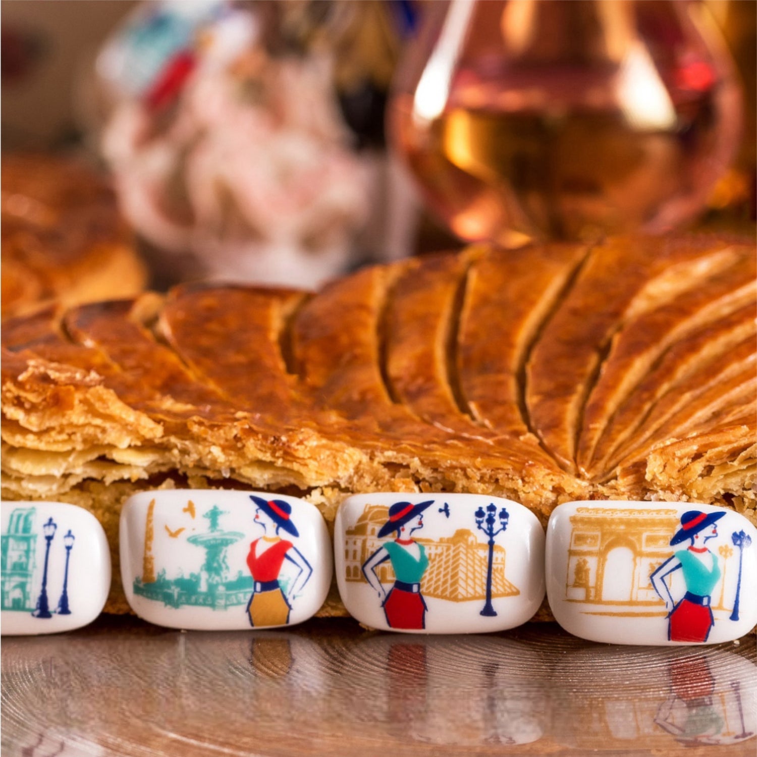 This chic and playful collection captures the spirit of Paris, with its iconic landmarks and irresistible charm. Whether you’re admiring the beauty of the Eiffel Tower or strolling down the Champs Élysées with Tiffanie, these fèves make the perfect addition to your galette des rois celebration.
