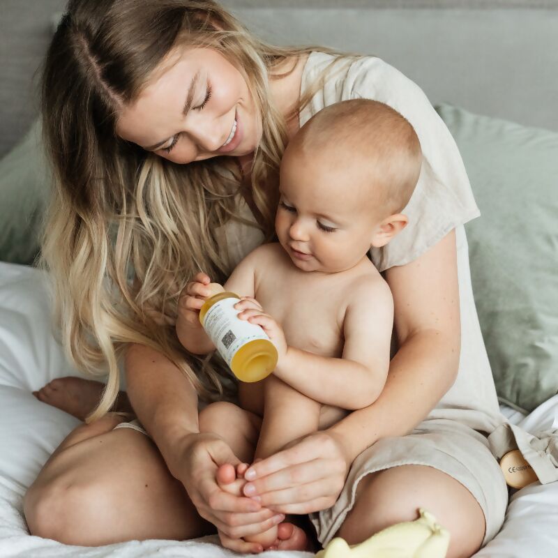 Gently massage Mama Baby Oil onto clean, dry skin to promote bonding and well-being with your little ones. Suitable for use pre and postpartum, and for newborns, its gentle formula offers soothing relief and nourishment for all skin types. Embrace the ritual of self-care and nurture the bond with your baby through the gentle touch of the Oil.