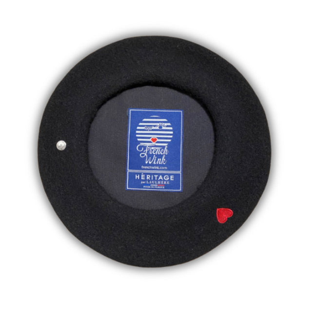 French Wink Béret Noir - With Heart embroidery is backordered and will ship as soon as it is back in stock.