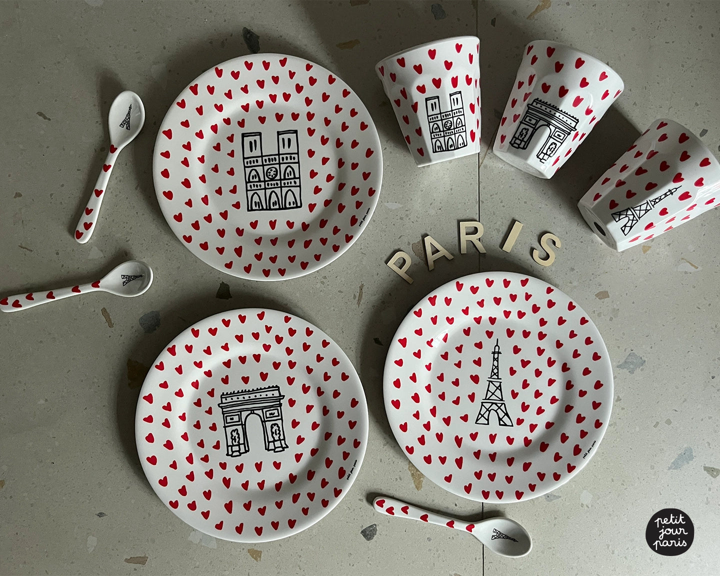 Elevate your dining experience with the Eiffel Tower Picto Plate, featuring delightful illustrations by renowned French artist Soledad. This charming plate showcases the iconic Eiffel Tower adorned with playful hearts, bringing a touch of Parisian elegance to your table.