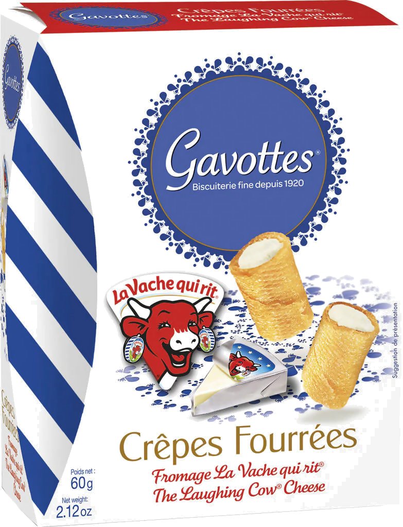 • Delight your taste buds with these crispy crêpes filled with La Vache qui Rit, a beloved French cheese spread perfect for snacking.