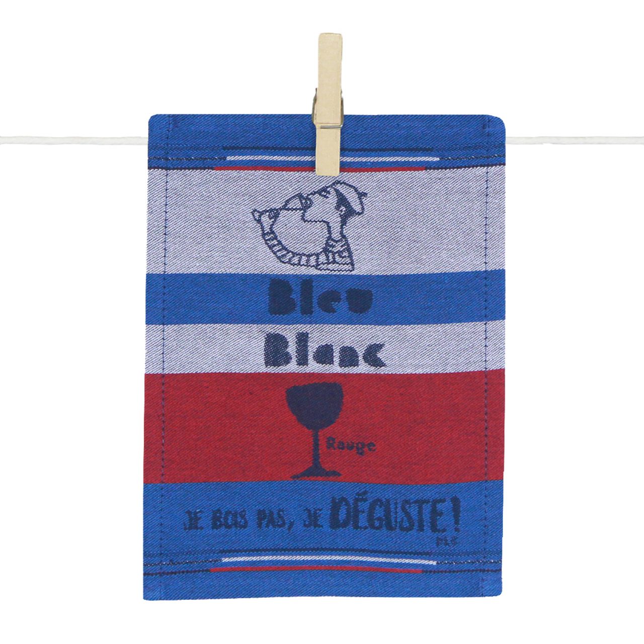 This Bleu Blanc Rouge dish towel is one of our best sellers. Bleu Blanc Rouge, the French national colors ending up in a glass of Red wine. No French clichés are missing: from the breton stripes shirts to the béret. In France, we don't drink alcohol, we ''deguste'' it. *savor