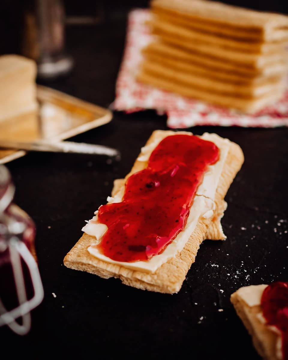 For a quick and classic breakfast, lather on jam (like this), butter, or a nut spread. Anything that would be good on toast will be good on a Cracotte.